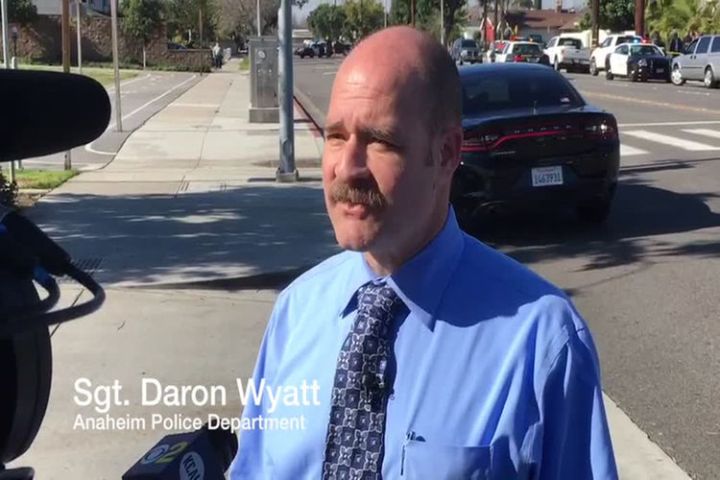 A 24-year-old man wanted for a homicide in Las Vegas was shot and injured by police gunfire on Tuesday in Anaheim, California.