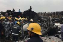 A passenger plane swerved, crashed and burst into flames as it landed Monday at Kathmandu airport in Nepal, a witness said.