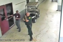 Security video shows a Florida sheriff’s deputy going toward the high school building while a gunman massacred 17 students and staff members, but he then backed away and stayed outside with his handgun drawn.