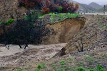 A powerful storm spread more rain across California on Thursday, swelling rivers, flooding streets and causing some mud and rock slides but, so far, sparing communities a repeat of the disastrous debris flows that hit during a downpour early this year.