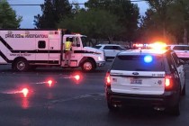 A Nevada Highway Patrol trooper reminds motorists that all vehicles must make a complete stop behind the white limit line at red lights and stop signs prior to making a right-hand turn or passing through an intersection.
