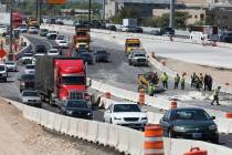 A Thursday morning semitrailer crash just north of the Spaghetti Bowl has traffic shut down to one lane, the Nevada Highway Patrol said.