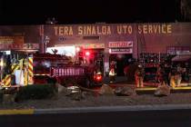 Firefighters from Las Vegas and North Las Vegas joined forces Wednesday morning to battle a blaze at an auto service shop on Las Vegas Boulevard North and Carey Avenue.