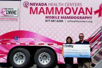 Findlay Automotive Group donated $6,375 to the Nevada Health Centers’ mobile mammography service called the Mammovan. The mammography service is conducted in an 18-wheel tractor-trailer that travels throughout Nevada providing mammograms to both men and women.