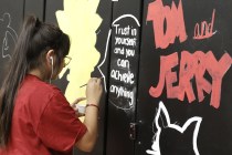 Mojave High School student council members helped renovate the school’s bathrooms by painting positive messages and images on the stall doors Friday.