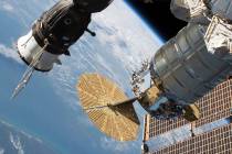 Astronauts scrambled Thursday to patch a tiny hole that was allowing air to leak from the Russian side of the International Space Station.