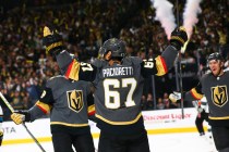 Golden Knights winger Max Pacioretty said his son asked him to score a goal during the team’s first home playoff game Sunday against the San Jose Sharks and he delivered.