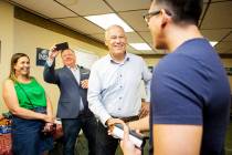 Washington governor and 2020 Democratic presidential hopeful Jay Inslee discussed gun control and climate change at a campaign event in Las Vegas on Sunday. He will head to Reno on Monday.