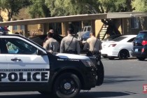 Patrol cars could be seen Monday at an apartment complex on West Sahara Avenue, a day after a resident reportedly confronted a speeding driver and was killed .