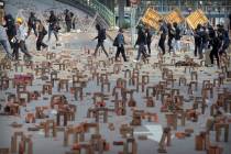 Hong Kong police warned protesters on Thursday that they were moving “one step closer to terrorism” by sinking the city into chaos, as riot squads skirmished with militant students at major universities.