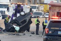 A suspected drunk driver traveling the wrong way on Interstate 15 was killed in a multivehicle crash Thursday morning.