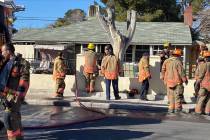 The fire broke out Tuesday afternoon in a two-story apartment building at 6501 W. Charleston Blvd., near Torrey Pines Drive.