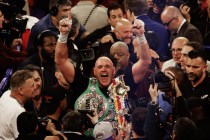 The Gypsy King wore the same suit he sported at the post-fight news conference, splashed with images of himself with his fists raised. “My Gypsy King suit!” he calls it.