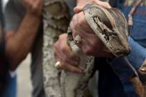 A lawsuit filed by a Clark County man claims he was snakebitten during a visit to a Las Vegas pet store when a Burmese python sank its fangs into his face.