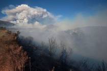 Las Vegas will experience hazy skies Monday, thanks to a wildfire burning in Southern California.