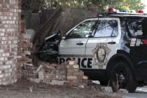 A shooting suspect led Las Vegas police on a lengthy vehicle pursuit throughout the valley Friday morning, causing the wreck of a patrol car.