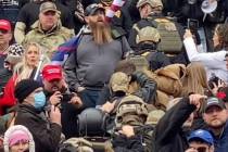 On Jan. 6, men in body armor marched through a crowd in a formation, known as “Ranger File” a standard procedure for a combat team that is “stacking up” to breach a building.