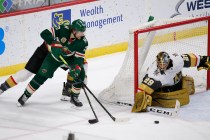 Marc-Andre Fleury won his 490th game, giving him the third-most victories in NHL history, in the Golden Knights’ overtime win Wednesday at the Minnesota Wild.