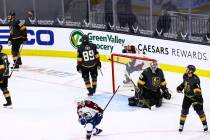 The Golden Knights were down three skaters in Monday’s loss to the Colorado Avalanche because of injuries to rookie forward Peyton Krebs and defenseman Alec Martinez.