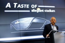 Raiders president Marc Badain offered a tour of the Raiderettes locker room at a recent event at Allegiant Stadium.