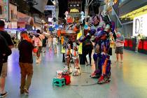 The American Civil Liberties Union of Nevada on Monday again threatened to sue the city of Las Vegas over its proposed changes to rules that govern buskers on Fremont Street.