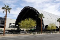 Steve Hill, president and CEO of the LVCVA, gave an update about NFL Draft construction at The Linq on Monday. The draft takes place April 28-30.
