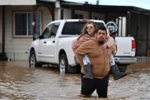 The ninth in a three-week series of major winter storms is churning through California. Mountain driving remains dangerous and flooding risk is high near swollen rivers.