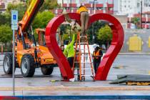 Clark County installed the 10-foot-tall steel sculpture outside its marriage license bureau in downtown Las Vegas.