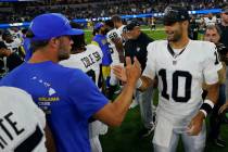 New Raiders quarterback Jimmy Garoppolo saw his first action with the team in a preseason game against the Rams on Saturday in Inglewood, California.