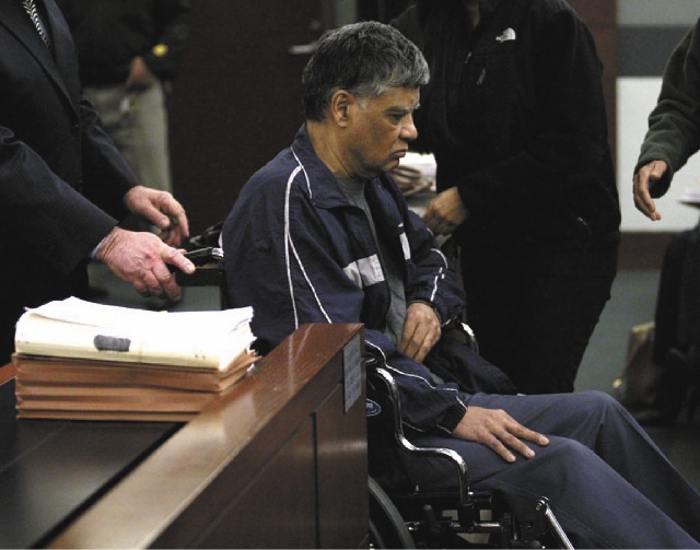Desai, 63, dressed in a navy jumpsuit and tennis shoes, was wheeled into court Thursday by family members. He sat motionless in the wheelchair looking downward throughout the hearing.