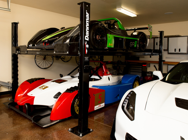 The garage on the ground floor houses Morris’ race cars, including a Wolf GB08SM, Radical SR3, Wolf GB08 and a Corvette Z06.