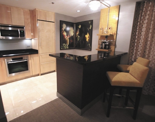 When Deutsche Bank took over The Cosmopolitan, the planned condominiums were turned into hotel rooms with small kitchenettes. Other condominium amenities, including washer-dryer units, were removed. However, the condominiums still under contract have all the amenities originally offered.