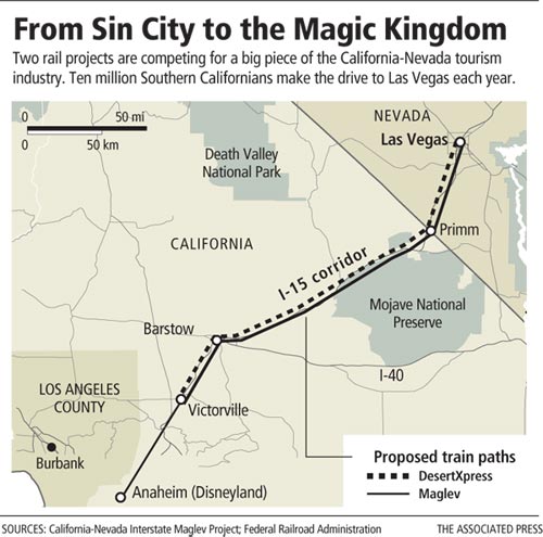 DesertXpress says its project would cost $3 billion to $5 billion, compared with $12 billion or more for maglev, and would be privately financed.