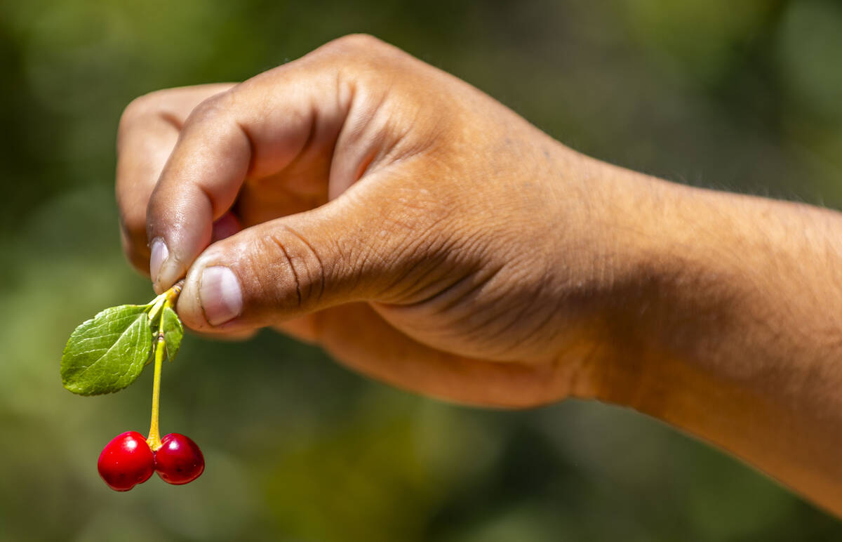 The cherry trees are a fraction of his grand total of 2,130 fruit trees at Ahern Orchard — 750 peach trees, 344 plum trees, 320 apple trees, 200 apricot trees, 150 pear trees, 125 pomegranate trees, 81 date trees, 80 nectarine trees, 28 jujube trees, 25 cherry trees, 12 almond trees, 10 quince trees and five pistachio trees.