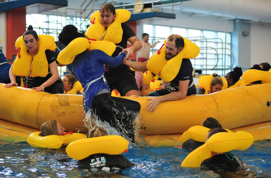 “They inflated passenger life vests that you’ll find on a commercial aircraft and simulated launching a raft into the water from an aircraft and boarded the raft” said Jay Lee, director of in-flight training, standards and compliance for Las Vegas-based Allegiant. “They also practiced a hypothermia drill, where they practice linking together to conserve body heat, as if they were in an open body of water.”