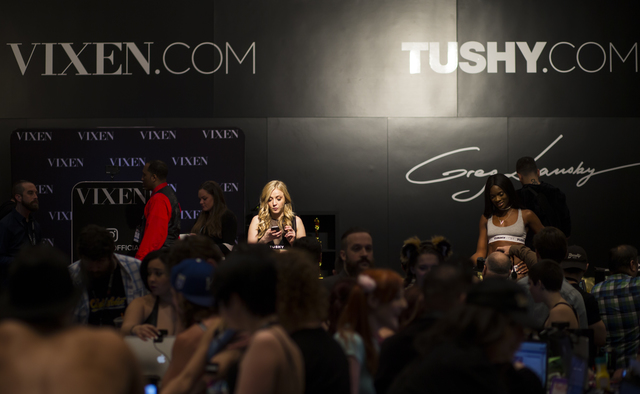 The festive atmosphere at the expo spoke little of the fear heard during the panel conference. Hundreds of popular porn industry movie stars and ‘cam girls’ dressed in skin-tight outfits, lingerie or bikinis posed for photographs and chatted with loyal fans inside the Hard Rock’s noisy convention room.
