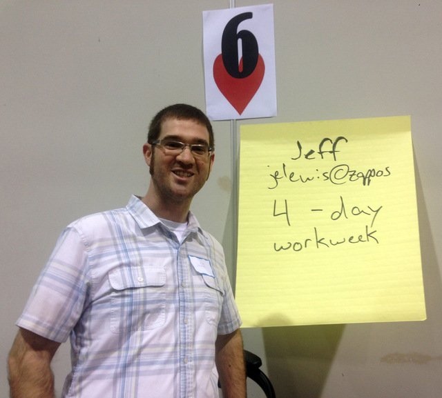 A few minutes later, Hsieh said he appreciated the 52 workers who were willing to come up with the Open Space topics, take notes and lead the sessions.