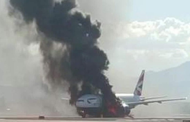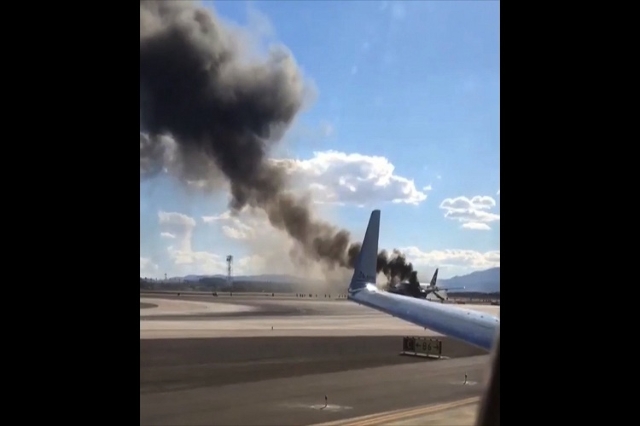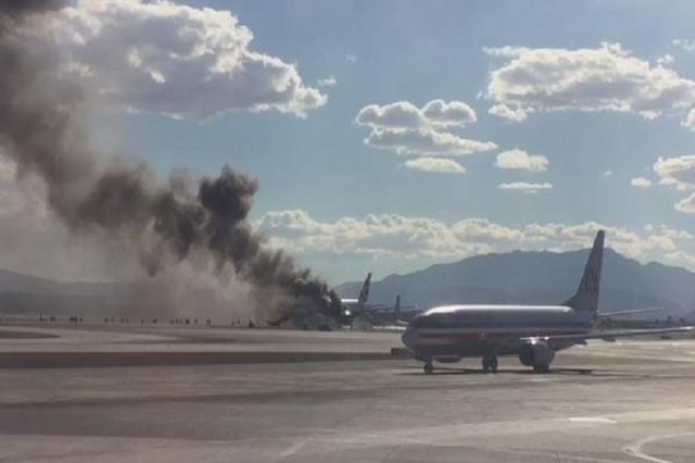 The pilot shut down the engine and aborted the takeoff and while McCarran's emergency response crews sped to the burning plane, passengers began evacuating on emergency slides.