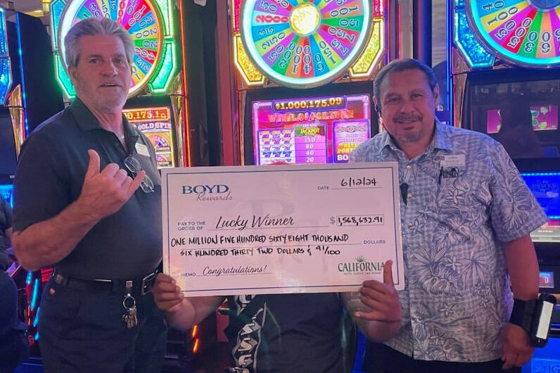 The lucky player wagered $5 on an IGT Wheel of Fortune slot machine at the California just before 4 a.m. and activated the bonus wheel with three 7’s across the payline, according to a news release from Boyd Gaming.