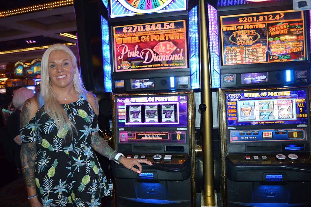 Christa F. of San Tan Valley, Arizona, won $270,847.25 on the 25-cent Wheel of Fortune Pink Diamond machine at the Aquarius Casino Resort.