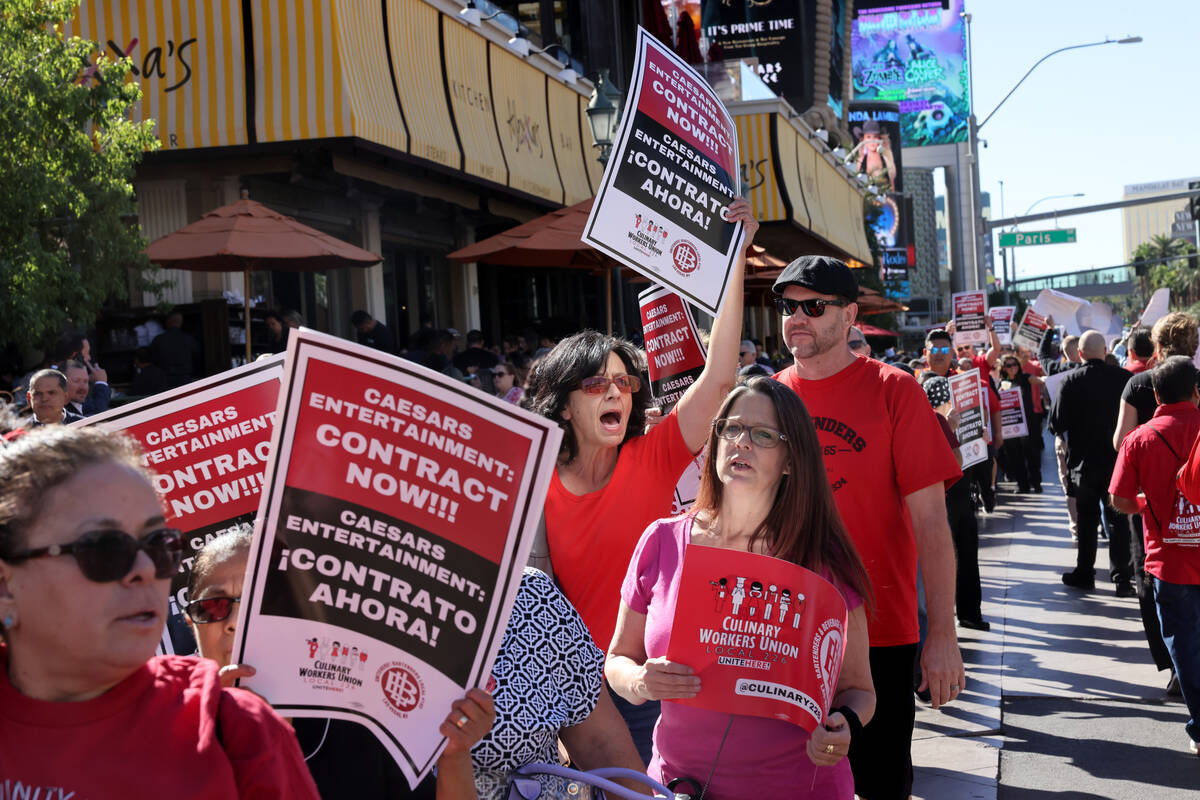 The picket will be Culinary’s second on the Strip this month. Workers also picketed in front of Paris and other hotels on Oct. 12.