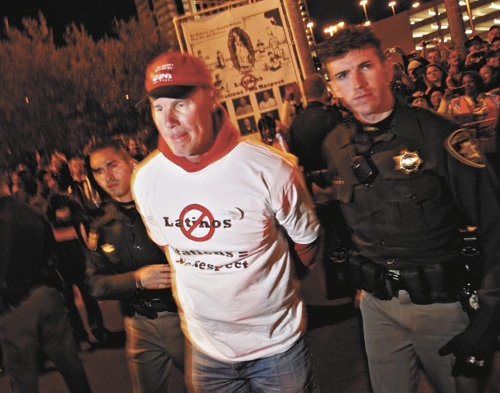 Burns ordered the protesters to clear the street and most of them did. But 22 who refused were arrested, placed in a police bus and charged with failure to clear the streets, a misdemeanor. Protesters who cleared the street stood by and chanted "Si se puede" and "Yes we can" as their fellow protesters were loaded onto the bus.