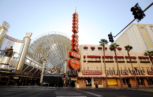 Visitors to the Golden Gate in downtown Las Vegas on Monday caught first glimpses of the casino’s makeover with final touches planned to be complete by early summer.