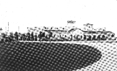 Before the 1931 full legalization, ground had been broken on the Meadows, Southern Nevada’s first casino resort. The property, sited at the intersection of Charleston Boulevard and Boulder Highway to attract dam workers on payday, rarely did well after its 1931 opening, due to the sudden rise in competition. The hotel burned down in 1932 and the casino burned down in 1943.