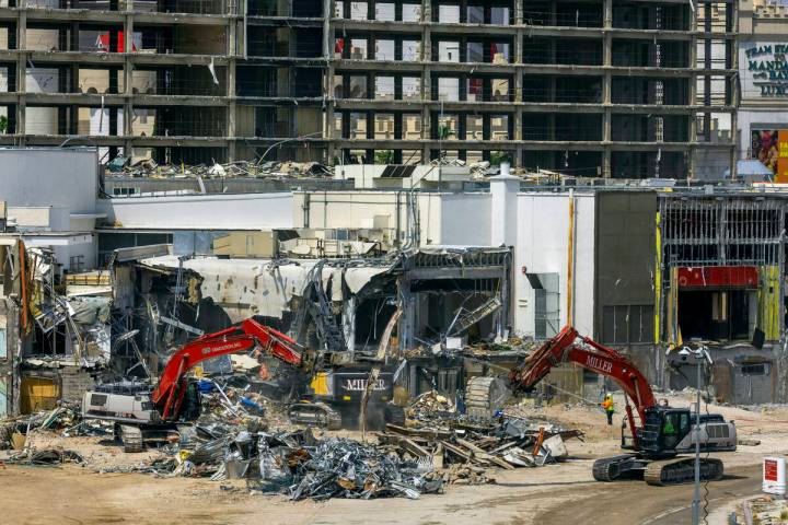 The Mirage casino-hotel’s iconic volcano is quickly being torn down as demolition continues in preparation of the property’s transition to Hard Rock.