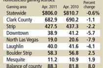 More tourists came to Las Vegas in April, but gambling revenue reports fell during the month because of the way revenues are reported.