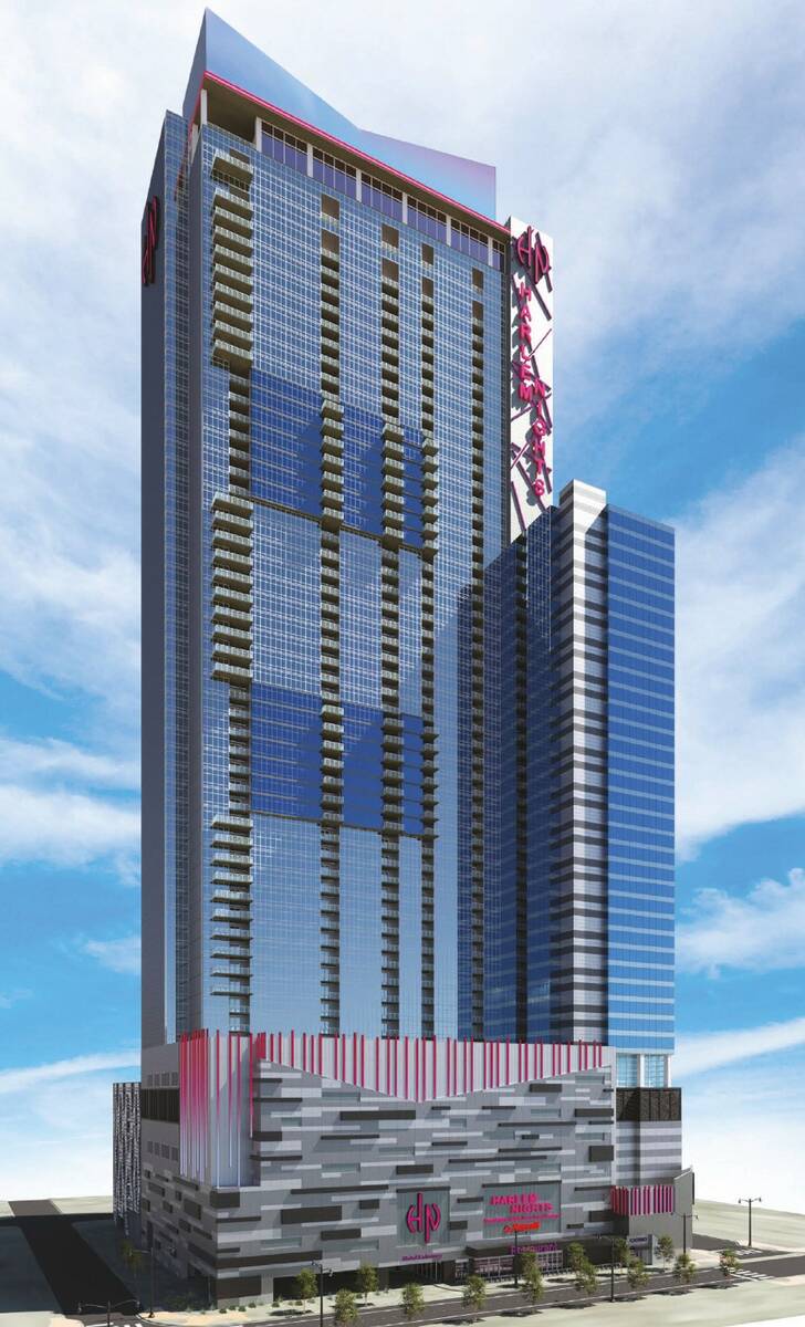 The project, known as Harlem Nights, calls for a 687-foot-tall tower that will include 764 hotel rooms, 458 residential units, casino space, a 900-seat theater as well as retail and restaurant options. The mixed-use resort would be on a nearly 2-acre site at the corner of Jackson Avenue and F Street.