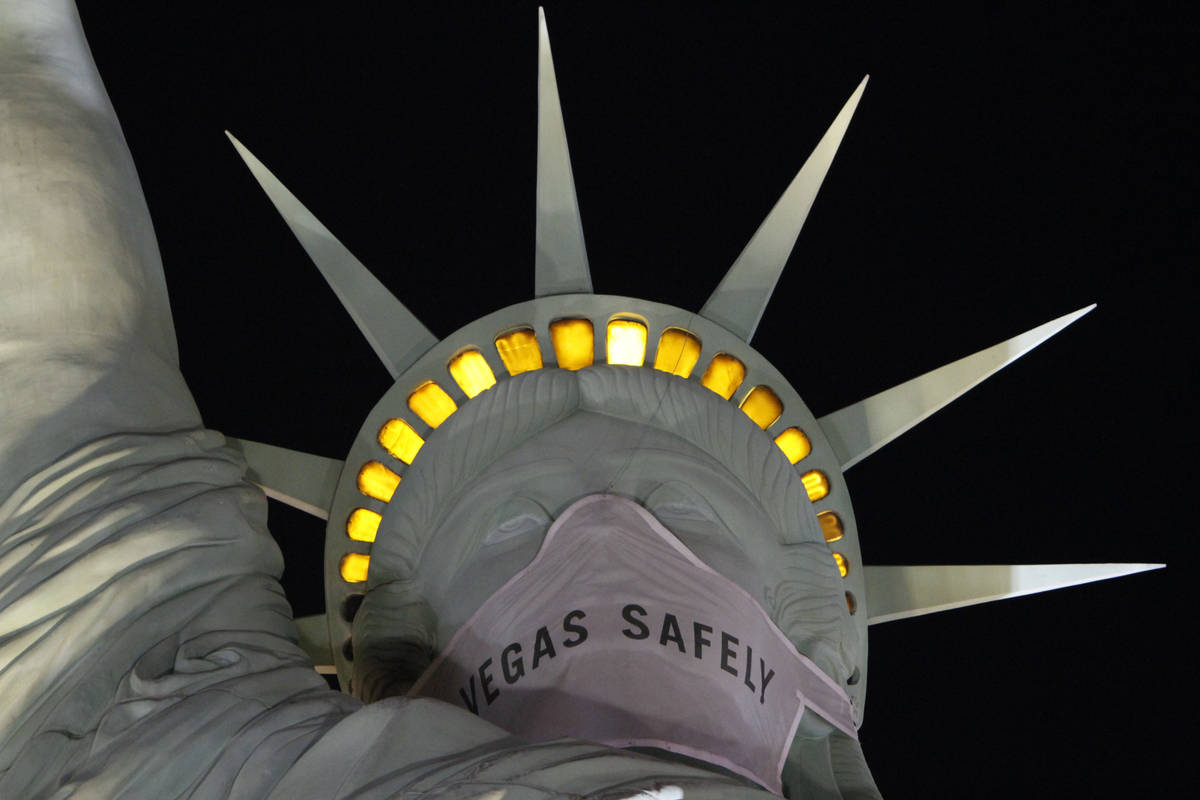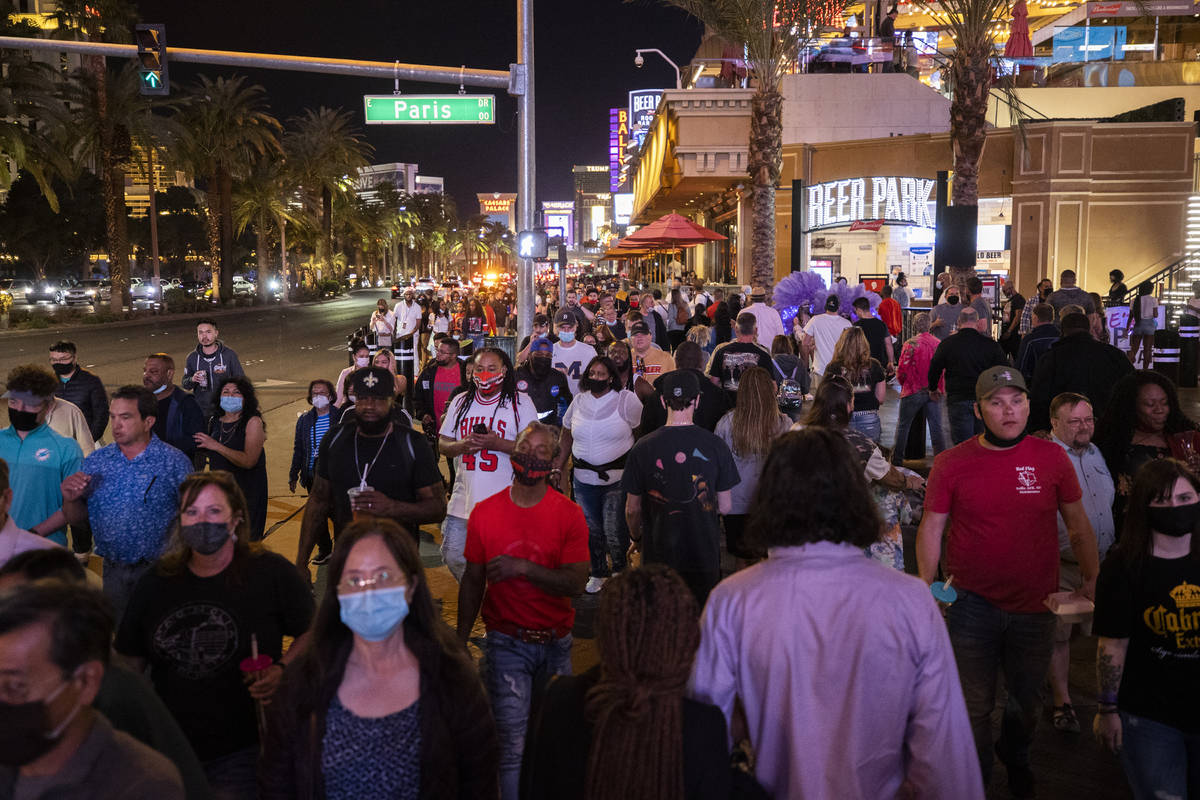 It was a first Vegas trip for three of the four women, visiting from Dallas and Miami. All four women wore masks, while about half of the crowd walking the boulevard did the same.