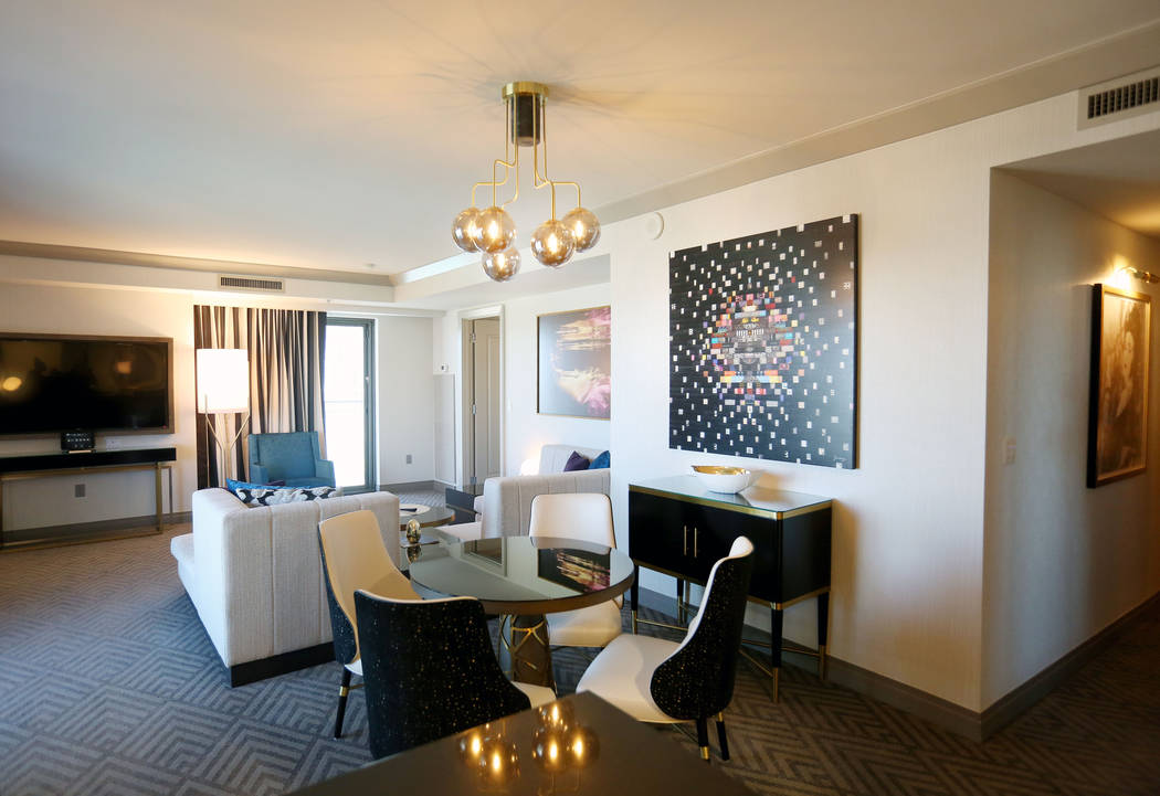 Eclectic photos hang in a newly renovated Studio Terrace suite at The Cosmopolitan of Las Vegas in Las Vegas, Tuesday, Oct. 10, 2017. Elizabeth Brumley Las Vegas Review-Journal @EliPagePhoto