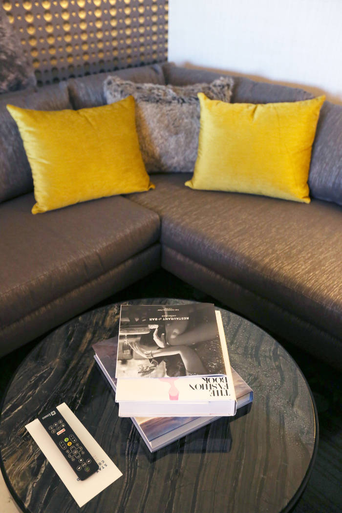 Books stacked on a coffee table as a way for a newly renovated Studio Terrace suite feels more homey, at The Cosmopolitan of Las Vegas in Las Vegas, Tuesday Oct. 10, 2017. Elizabeth Brumley Las Vegas Review-Journal @EliPagePhoto